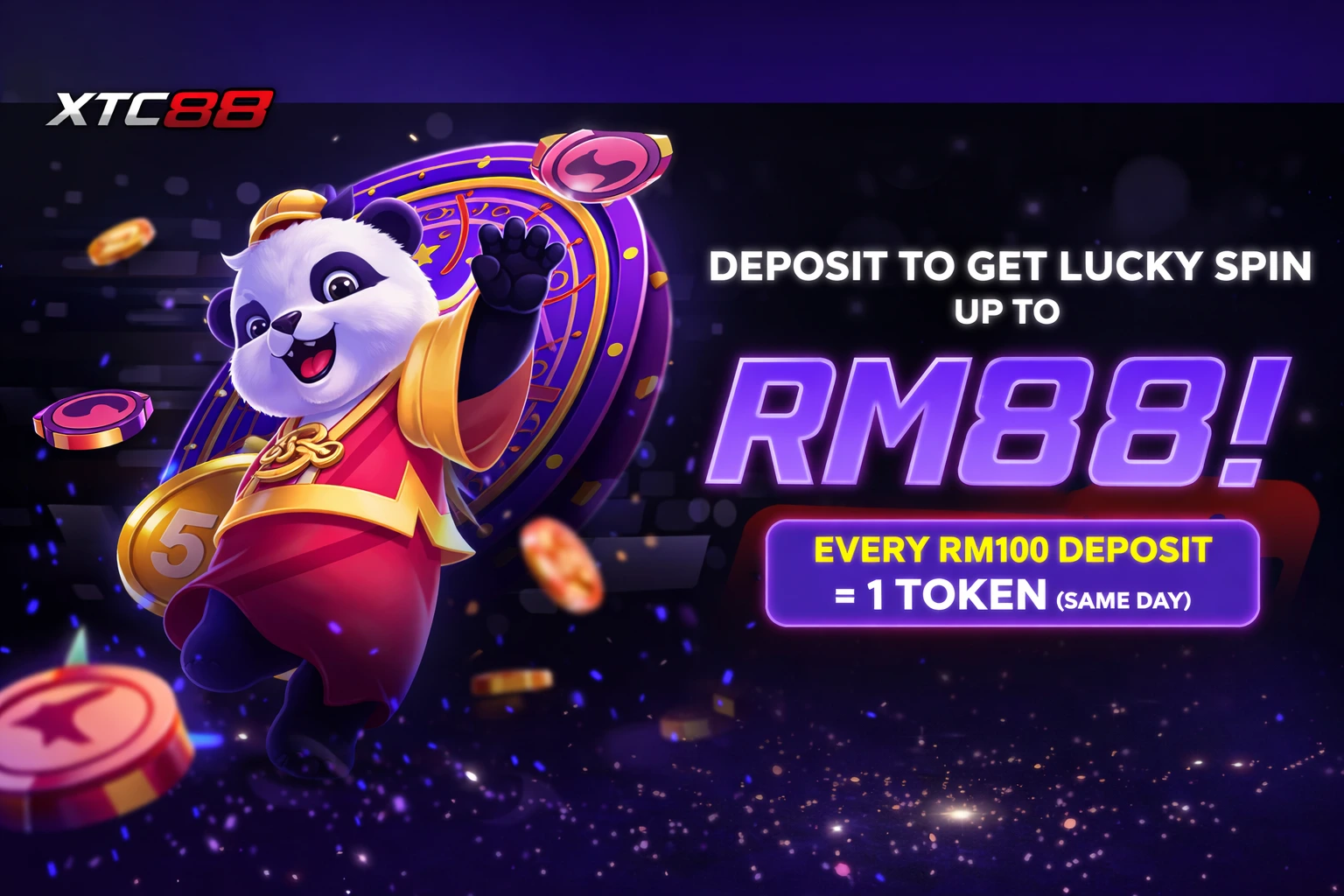 You earn 1 Lucky Spin token for every RM100 deposit and can spin to win up to RM888.